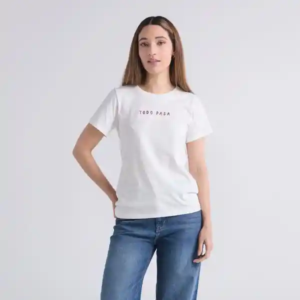 Camiseta Todo pasa - Marfil: Camiseta color marfil de cuello redondo y manga corta. Lleva estampado en el delantero y en la manga derecha. Composición: 100% algodón. Cuidados: Leer la etiqueta de cuidados antes de lavar.