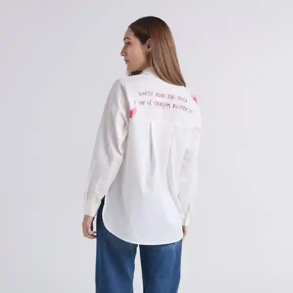 Camisa Sin prisa - Marfil: Camisa color marfil de cuello clásico y cierre frontal con botones, con bolsillo en el delantero izquierdo. Manga larga con prenses, puños abotonados y almilla en la espalda. Cuenta con arte en el bolsillo y la almilla. Composición: 75% poliéster, 23% algodón, 2% spandex. Cuidados: Leer la etiqueta de cuidados antes de lavar.
