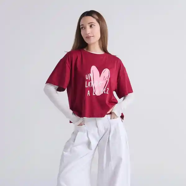 Camiseta Latidos - Vinotinto: Camiseta color vino tinto de cuello redondo, hombro caído y manga corta. Cuenta con arte en el delantero. Composición: 100% algodón. Cuidados: Leer la etiqueta de cuidados antes de lavar.
