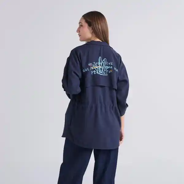 Chaqueta Para ser - Azul: Chaqueta azul con cuello tipo solapa, manga 3/4 con charreteras para ajuste y bolsillos laterales. Incorpora cordón interno de ajuste y capa en la parte posterior con arte. Cierre con 3 botones. Composición: 90% rayón, 10% poliéster. Cuidados: Leer la etiqueta de cuidados antes de lavar.