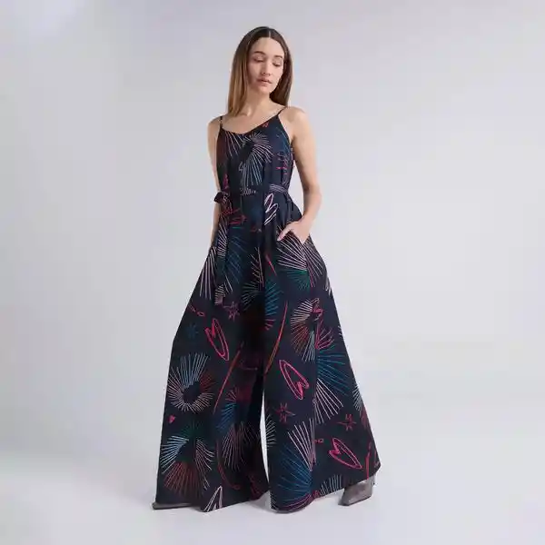 Enterizo Take your time - Azul: Enterizo estampado azul oversize, con escote en “V” y falsos internos, bolsillos laterales y bota ancha tipo palazzo. Cuenta con cremallera invisible en el costado derecho y cordón removible en la misma tela. Composición: 96% poliéster, 4% spandex. Cuidados: Leer la etiqueta de cuidados antes de lavar.