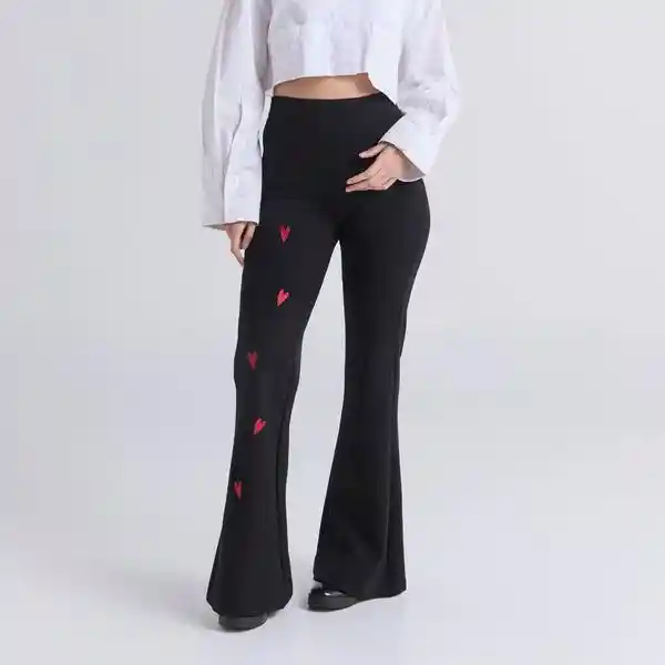 Pantalón Flare básico - Negro: Pantalón stretch negro, fit tipo flare y tiro alto. Pretina elástica. Cuenta con bordado en el delantero derecho. Composición: 69% rayón, 27% nylon, 4% spandex. Cuidados: Leer la etiqueta de cuidados antes de lavar.
