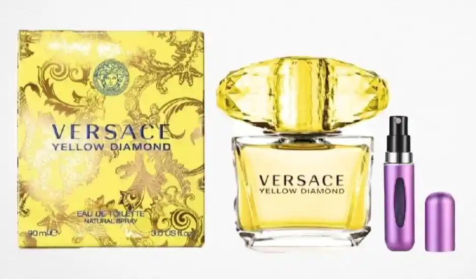 Yellow Diamond Versace 1.1 es una fragancia femenina tipo Eau de Parfum, con perfil cítrico floral y fondo afrutado. Su composición combina notas de limón, neroli, flor de azahar y mimosa, diseñada para proyectar luminosidad, elegancia vibrante y feminidad radiante. Presentación en frasco de 100 ml versión 1.1, acompañado de perfumero recargable (color sujeto a disponibilidad). Producto empacado en caja con celofán, pin y sello.