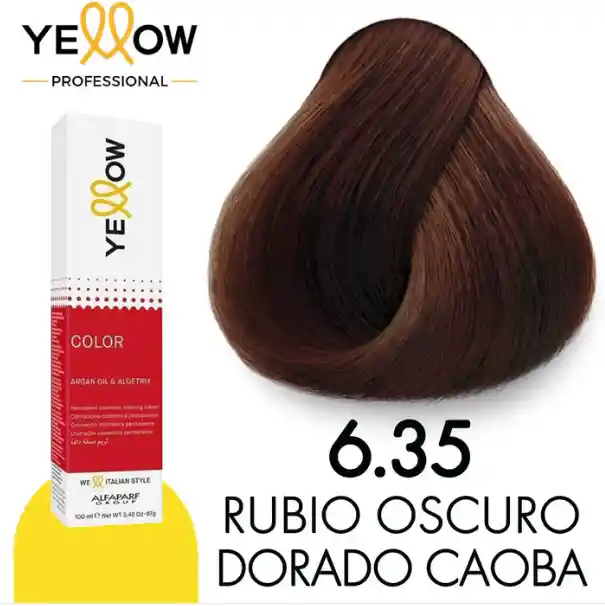 Yellow Tinte Tono 6.35 Rubio Oscuro Dorado Caoba (incluye Guantes, Peróxido Y Tratamiento)