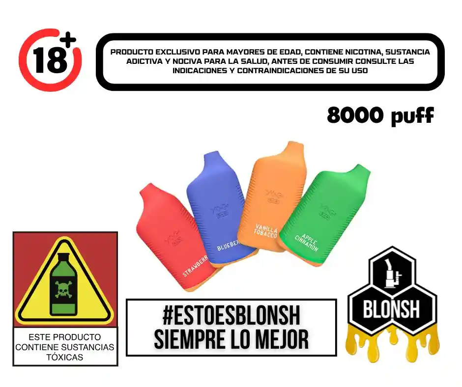 8000 Puffs por Dispositivo 🔋💨 5% de Nicotina🌿🔥 Sabores Únicos 🍯🍓🥣 Recargable con USB-C⚡🔌 Diseño Elegante y Compacto👜🎒