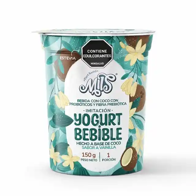 Experimenta la fusión perfecta entre salud y sabor con nuestro Yogurt sin lácteos Bebible RICO EN CALCIO en presentación de 150g sabor natural. Ingredientes Agua, coco, almidón de yuca, fibra vegetal de achicoria (fibra prebiótica), fosfato tricálcico (fuente de calcio), goma guar (estabilizante), sal marina, premezcla de vitaminas (Vitamina A, vitamina E, vitamina B12, Zinc), cultivos probióticos (Streptococcus thermophilus, lactobacillus acidophilus, Lactobacillus delbrueckii subsp. bulgaricus, Lactobacillus delbrueckii subsp. lactis, Bifidobacterium lactis, lactobacillus rhamnosus), sabor natural a vainilla.