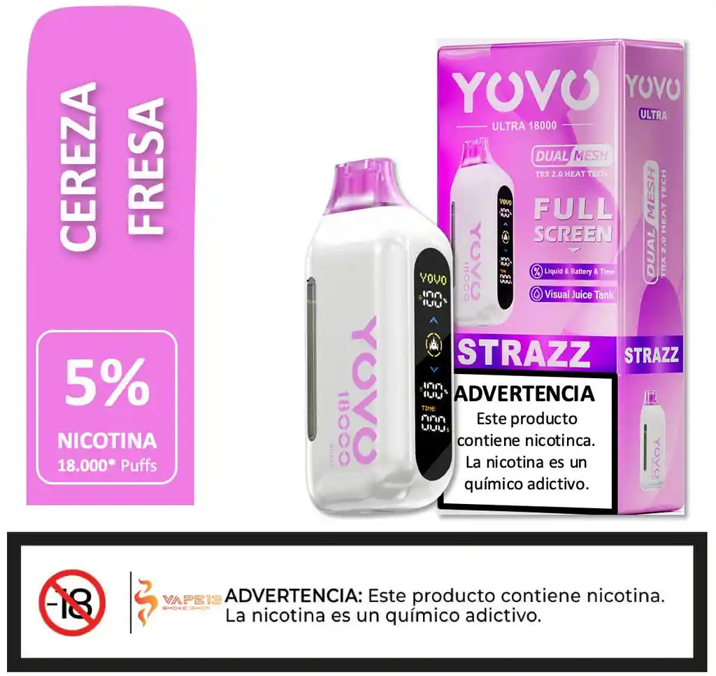 Cereza Fresa - Prohibido para menores de Edad. Este producto contiene nicotina. La nicotina es un químico adictivo.