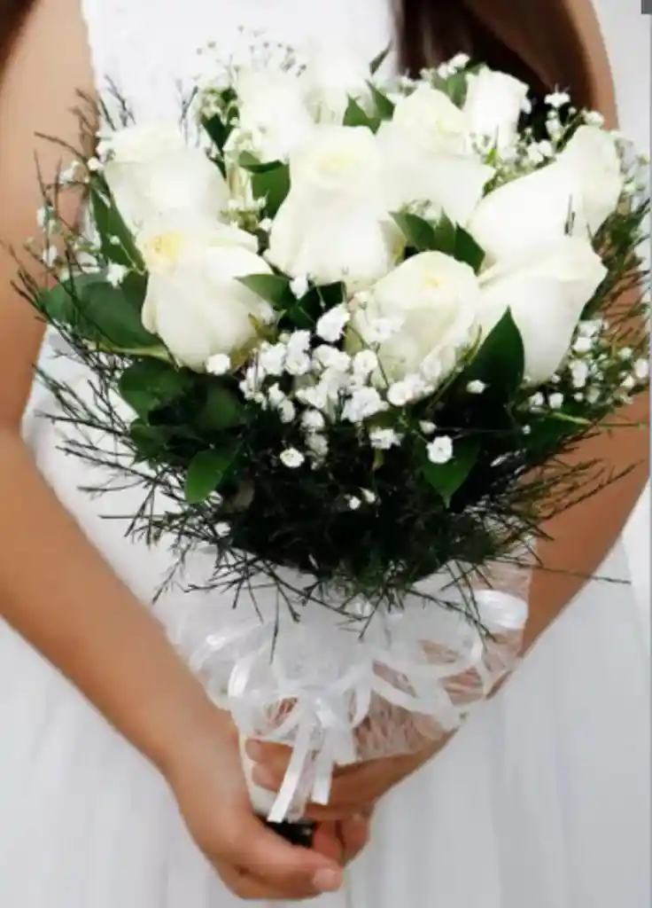 Hermoso y sofisticado yugo para la primera comunión con 10 rosas blancas