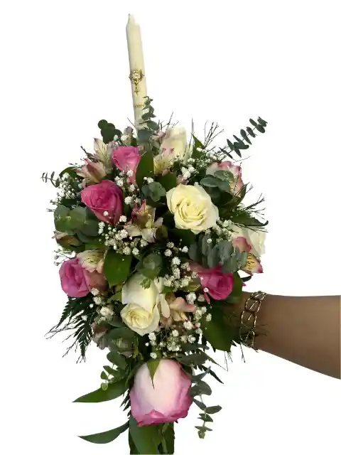 Yugo especial para Primera Comunión, decorado con flores frescas y detalles delicados. Incluye vela y adornos simbólicos para este día tan importante. Ideal para ceremonias, ofrendas y regalos familiares. Listo para entregar y hecho con acabado fino.
