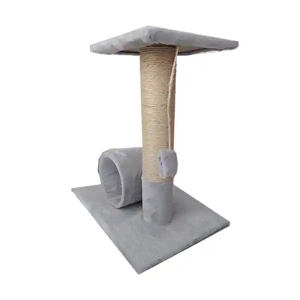 Rascador Con Túnel; Para Gatos. Tiene 50 cm de Altura y 40 x 30 cm de Ancho. Fabricado en Madera Mdf y Tela Piel de Conejo.