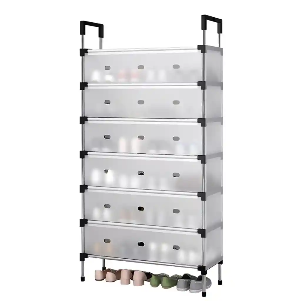 Organiza tu espacio de manera práctica y elegante con este zapatero de 7 niveles, diseñado para quienes necesitan maximizar cada rincón de su hogar. Su estructura reforzada y su cubierta frontal abatible mantienen los zapatos protegidos y a la vista, facilitando tus decisiones diarias. Ideal para hogares modernos que buscan orden sin complicaciones. Especificaciones del Producto: Tipo: Zapatero vertical de 7 niveles Material: Metal y PP Color: Negro Capacidad: Hasta 21 pares Dimensiones: 66 × 29 × 127 cm Incluye – 1 Zapatero completo Características – Marco estable de tubos metálicos y conectores plásticos – Cubierta translúcida a prueba de polvo (frontal abatible 180°) – Niveles desmontables para botas o tacones – Fácil de limpiar y de montar sin herramientas – Asas superiores con ganchos para accesorios Garantía Garantía del vendedor: 30 días por defectos de fábrica. Política de Retracto Aplica derecho de retracto por 5 días hábiles desde la entrega, con el producto completo y sin señales de uso. Nota Importante Si el producto llega golpeado o con piezas faltantes, repórtalo en las primeras 24 horas a la transportadora. Para aplicar la garantía, envía fotos y videos donde se evidencie el defecto.