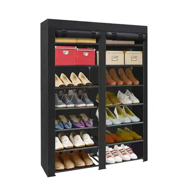 Zapatera con 6 niveles principales. Esta zapatera se puede adaptar a tus necesidades, puedes modificar el número de niveles y así ordenar todo tipo de calzado desde tenis hasta botas. Nuestra zapatera está fabricada con tubos metálicos y conectores de plástico, lo que hace su armado sumamente fácil y rápido. ¡Diseño compacto! Por sus dimensiones es ideal para colocar en cualquier parte de la recámara. Al ser ligera, podrás cambiarla de lugar tú mismo las veces que quieras. Es fácil de armar, no requieres herramientas; sólo tienes que ensamblar y en poco tiempo estará lista. Cuenta con puerta enrollable para evitar la entrada de polvo.