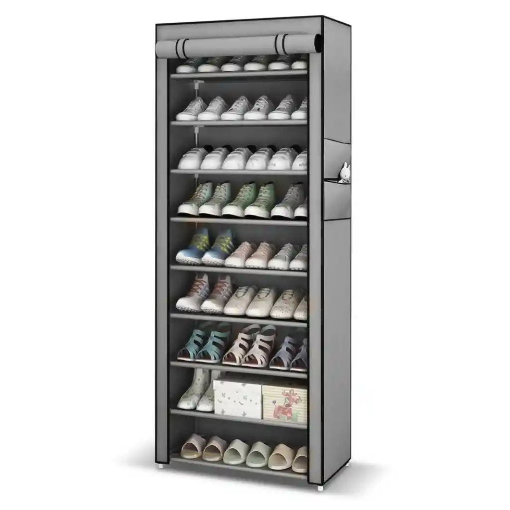 Zapatero Organizador de 9 Niveles – Orden y Gran Capacidad Optimiza el espacio de tu hogar con este zapatero vertical de alta capacidad, diseñado para almacenar hasta 27 pares de calzado. Su estructura robusta de acero con cubierta de tela protege tus pertenencias del polvo, ofreciendo una solución versátil y estética para dormitorios, entradas o vestíbulos. Características Principales Capacidad para 27 Pares: 9 niveles amplios ideales para zapatillas, tacones y calzado deportivo. Espacio Flexible: Estantes ajustables y removibles para acomodar botas largas o botines. Estructura Robusta: Tubos de metal y conectores de plástico reforzados que evitan tambaleos. Cubierta Antipolvo: Funda de tela no tejida que mantiene tus zapatos limpios y protegidos. Estantes Impermeables: Superficies fáciles de limpiar con un paño húmedo ante derrames o suciedad. Montaje Sin Herramientas: Ensamblaje intuitivo y rápido, adaptable a cualquier rincón del hogar. Especificaciones Técnicas Dimensiones: 158 cm (Alto) x 60 cm (Ancho) x 28 cm (Profundo). Materiales: Tubos de acero, tela no tejida y conectores de plástico PP. Distancia entre niveles: 17,3 cm. Carga por estante: Hasta 3 kg de peso estático. Carga Total: 27 kg de capacidad máxima. Peso del producto: 2.4 kg (ligero y fácil de mover). Funciones y Versatilidad Multiusos: Funciona como organizador de ropa de cama, sombreros en dormitorios o cajas en el garaje. Diseño Compacto: Su formato vertical aprovecha la altura de las paredes sin invadir pasillos. Protección Integral: La tela transpirable evita la acumulación de humedad y malos olores. Contenido del Paquete 1 x Zapatero Organizador de 9 Niveles. 1 x Cubierta de tela protectora. 1 x Manual de uso y montaje. Garantía Este producto cuenta con 30 días de garantía exclusivamente por defectos de fabricación en su estructura o materiales. Política de Retracto Aplica por 5 días hábiles tras la entrega. El producto debe devolverse desarmado, limpio, con todas sus piezas metálicas y conectores en el empaque original. Notas Importantes Distribución de Peso: Se recomienda colocar el calzado más pesado en los niveles inferiores para mayor estabilidad. Cuidado de la Tela: No lavar en lavadora; limpiar únicamente con un paño húmedo para no dañar el recubrimiento. Evidencia: Para cualquier trámite de garantía, es indispensable presentar fotos y videos del producto durante el proceso de armado.