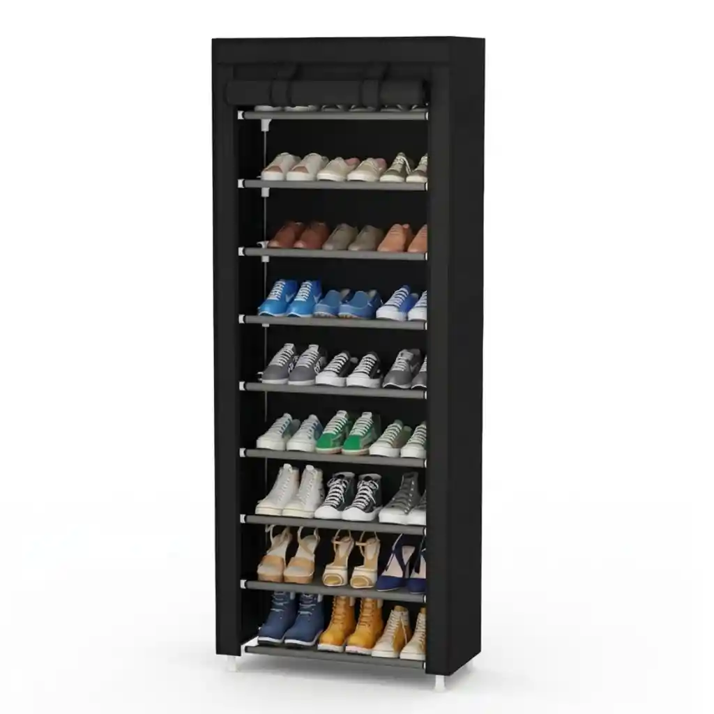 Zapatero Organizador de 9 Niveles – Orden y Gran Capacidad Optimiza el espacio de tu hogar con este zapatero vertical de alta capacidad, diseñado para almacenar hasta 27 pares de calzado. Su estructura robusta de acero con cubierta de tela protege tus pertenencias del polvo, ofreciendo una solución versátil y estética para dormitorios, entradas o vestíbulos. Características Principales Capacidad para 27 Pares: 9 niveles amplios ideales para zapatillas, tacones y calzado deportivo. Espacio Flexible: Estantes ajustables y removibles para acomodar botas largas o botines. Estructura Robusta: Tubos de metal y conectores de plástico reforzados que evitan tambaleos. Cubierta Antipolvo: Funda de tela no tejida que mantiene tus zapatos limpios y protegidos. Estantes Impermeables: Superficies fáciles de limpiar con un paño húmedo ante derrames o suciedad. Montaje Sin Herramientas: Ensamblaje intuitivo y rápido, adaptable a cualquier rincón del hogar. Especificaciones Técnicas Dimensiones: 158 cm (Alto) x 60 cm (Ancho) x 28 cm (Profundo). Materiales: Tubos de acero, tela no tejida y conectores de plástico PP. Distancia entre niveles: 17,3 cm. Carga por estante: Hasta 3 kg de peso estático. Carga Total: 27 kg de capacidad máxima. Peso del producto: 2.4 kg (ligero y fácil de mover). Funciones y Versatilidad Multiusos: Funciona como organizador de ropa de cama, sombreros en dormitorios o cajas en el garaje. Diseño Compacto: Su formato vertical aprovecha la altura de las paredes sin invadir pasillos. Protección Integral: La tela transpirable evita la acumulación de humedad y malos olores. Contenido del Paquete 1 x Zapatero Organizador de 9 Niveles. 1 x Cubierta de tela protectora. 1 x Manual de uso y montaje. Garantía Este producto cuenta con 30 días de garantía exclusivamente por defectos de fabricación en su estructura o materiales. Política de Retracto Aplica por 5 días hábiles tras la entrega. El producto debe devolverse desarmado, limpio, con todas sus piezas metálicas y conectores en el empaque original. Notas Importantes Distribución de Peso: Se recomienda colocar el calzado más pesado en los niveles inferiores para mayor estabilidad. Cuidado de la Tela: No lavar en lavadora; limpiar únicamente con un paño húmedo para no dañar el recubrimiento. Evidencia: Para cualquier trámite de garantía, es indispensable presentar fotos y videos del producto durante el proceso de armado.