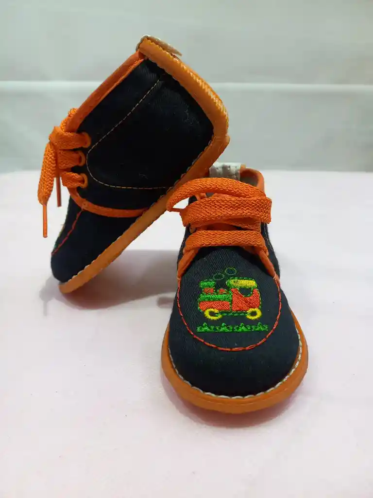 Zapato no tuerce para niño, gamuza, color negro con naranja, de amarrar, número 20.