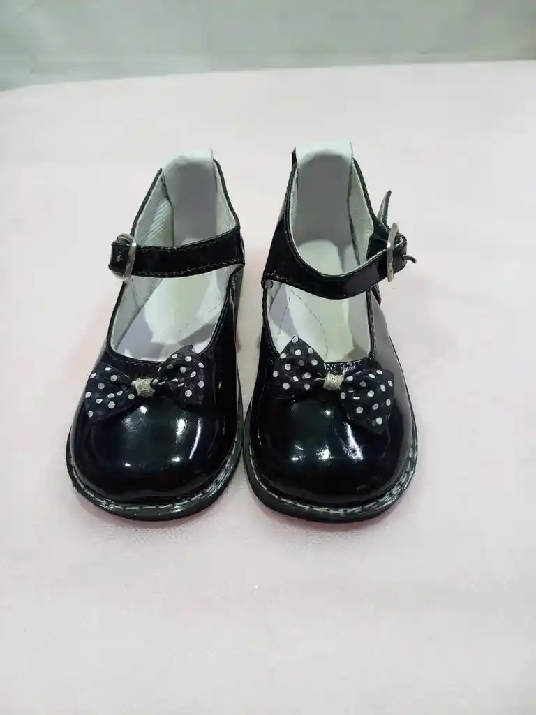 Zapato no tuerce en charol, para niña, color negro con moño. Tallas 22.
