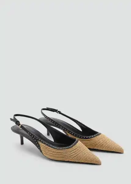 Par. Cierre de Hebilla Con Punta Detalle de Tachuelas Diseño Destalonado el Color Marrón es Exclusivo Online el Tacón Mide 45 cm Tacón Kitten Tejido de Fibra Natural - 87044798_07.