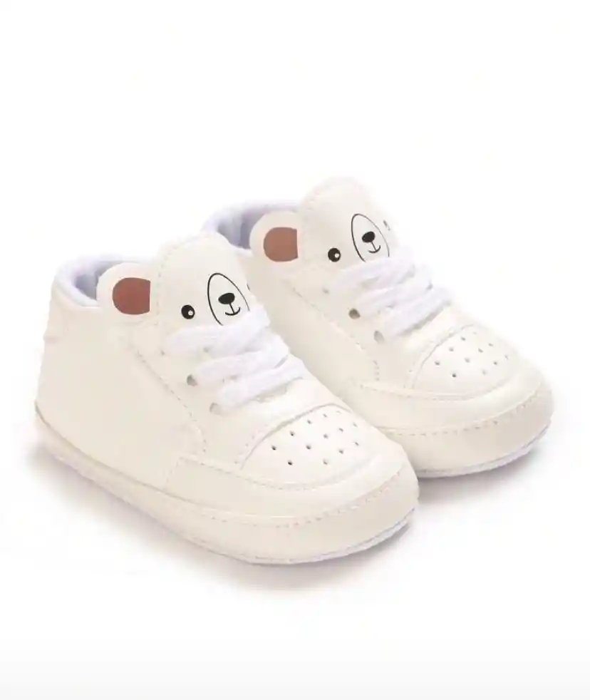 Tenis blancos para bebé con diseño de osito 🐻, elaborados en poliéster suave con acabado tipo cuero. Cómodos, flexibles y con suela antideslizante, ideales para bebés que gatean o comienzan a caminar. Perfectos para cualquier ocasión — desde el uso diario hasta sesiones de fotos. 👶 Tallas: de 6 a 12 meses (consultar guía de medidas). 💨 Material transpirable y fácil de limpiar. 🧸 Diseño unisex con detalle de carita de oso, tierno y moderno. 💧 Cierre con cordones elásticos para mayor ajuste y seguridad. Talla :15-16 cm 12.5 aprox