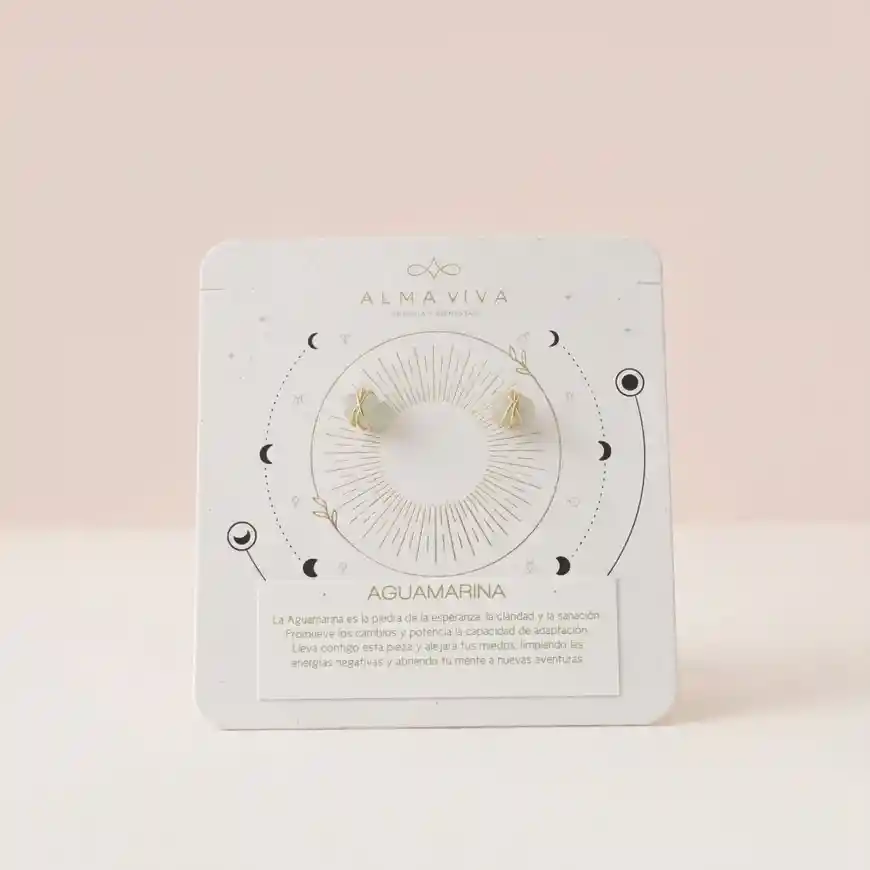 Zarcillo con cuarzo enmarañado. Elaborado en Bronce con baño de oro de 18K