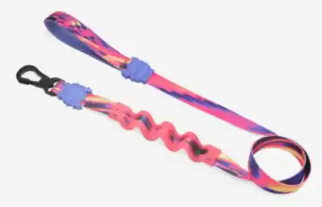 La correa Zee Dog Ruff Leash Glitch Error #500 es una correa diseñada para perros, caracterizada por su amortiguación de impactos y un resorte que absorbe los tirones.