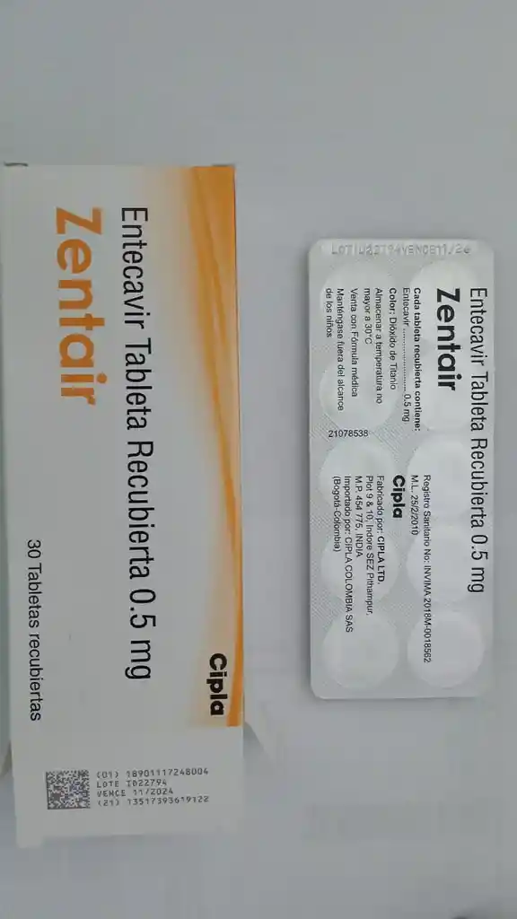 Zentair Caja X 30 Tab Recubiertas 0.5mg (entecavir)