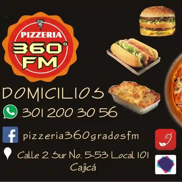 La dirección de Pizzeria 360 fm es cl 2 sur 5 53 la naveta el tejar cajica cundinamarca colombia.