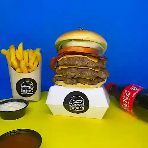 Hamburguesa triple cheese bacon, papas a la francesa y bebida de 400 ml a elegir.