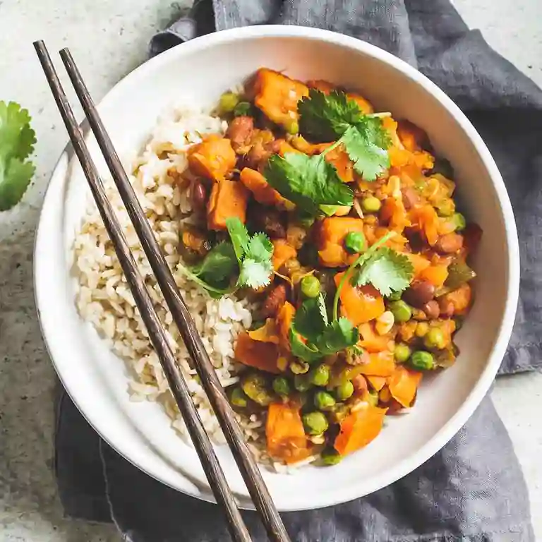 Tamal hecho con harina de arroz, harina de maíz, tofu, gluten, quinua, arveja y zanahoria, acompañado de ensalada y jugo del día.