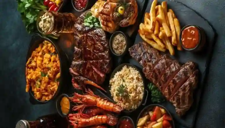 Churrasco de 350 gr acompañado de arroz, papa francesa, yuca, ensalada y limonada 9 oz