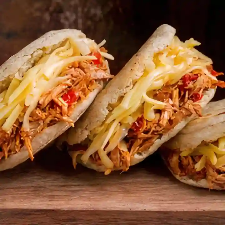 Rellena de carne desmechada, queso doble crema y salchicha.