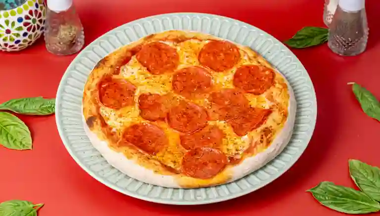 Masa italiana al estilo napolitano, deliciosa salsa napolitana original de la casa, queso mozzarella y peperoni