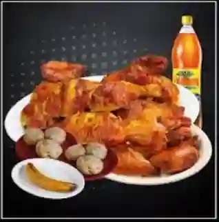 Combo especial: pollo asado, arepa, yuca, papa, plátano maduro y gaseosa de 1.5 litros.