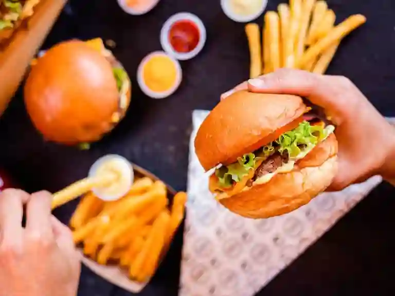 Cheese burger con carne de 130 gr a elegir, papas fritas y bebida de productos coca cola disponibles.