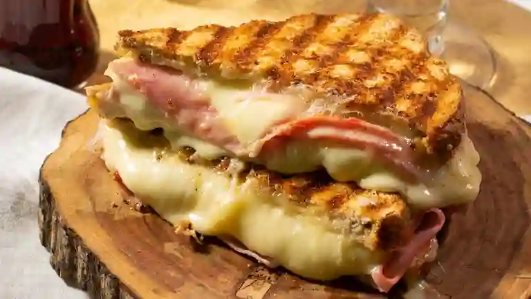 Sandwich jamon y queso, pan especial de mantequilla, jamon, queso, lechuga, tomate, cebolla, salsa de la casa