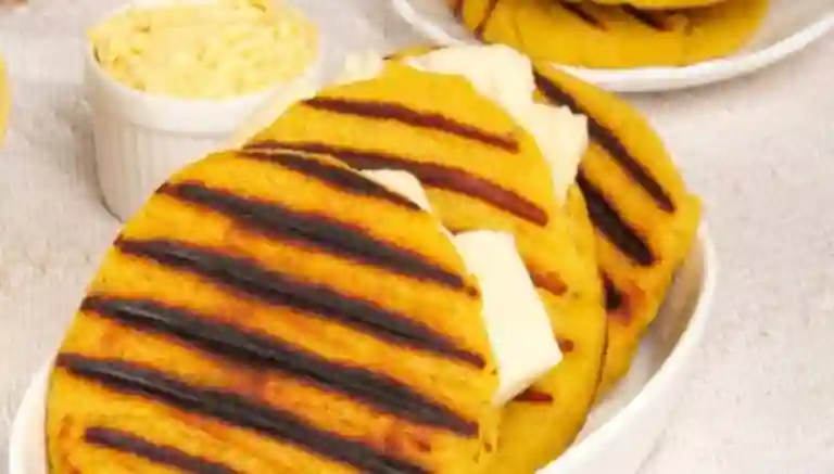 Arepa platanuda preparada al estilo costeño con queso, suero y hogao; sabor auténtico y contundente.