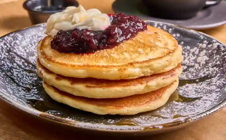 Con crema de mascarpone y mermelada de jamaica y frutos rojos