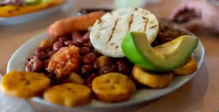 Entrada mas principio, arroz, ensalada, dos platanos, bebida 9 onz.