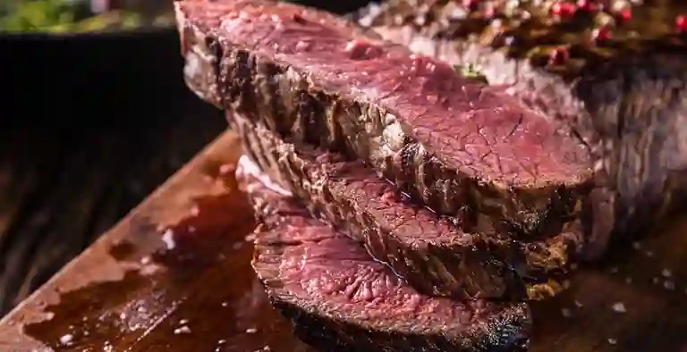 Lomo, ancho de fibra, marcada y caracter intenso. Su grosor impotente resalta la intensidad natural en cada corte.