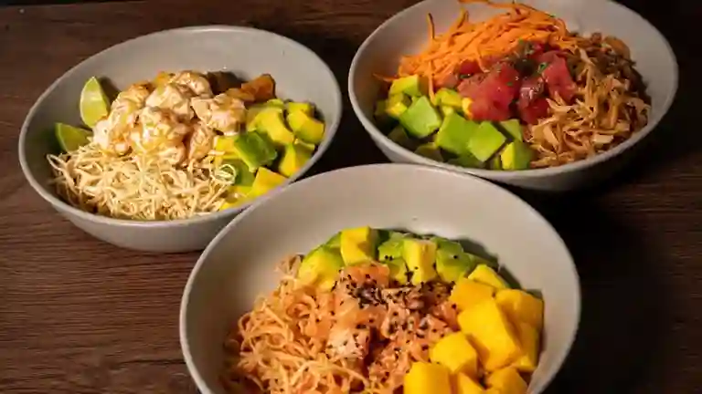 Arma tu poke perfecto: una proteína, dos verduras, dos toppings y una salsa a elección.