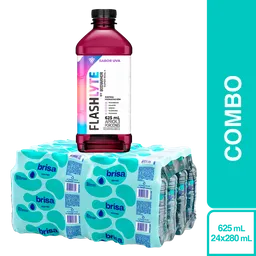Combo Agua Brisa 280 mL x 24 Unds + Flashlyte Uva 625 mL